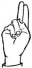 На ћирилици написано ТАРА ШУБИЋ састоји се из 9 слова [?]. Исписано ћириличном једноручном азбуком за глувонеме: